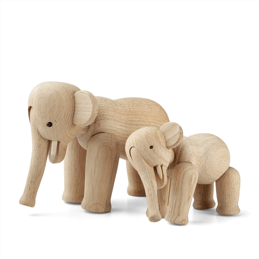Elefanten kom til verden i 1953. Kay Bojesens fantasifulde familie af trædyr har en helt særlig appel til både børn og voksne. Til dåb, fødselsdag, studentergave, jubilæum eller bryllup. Elefantens bløde linjer i træet samt dens runde søde former skaber en illusionen, man har lyst til at holde om og af!