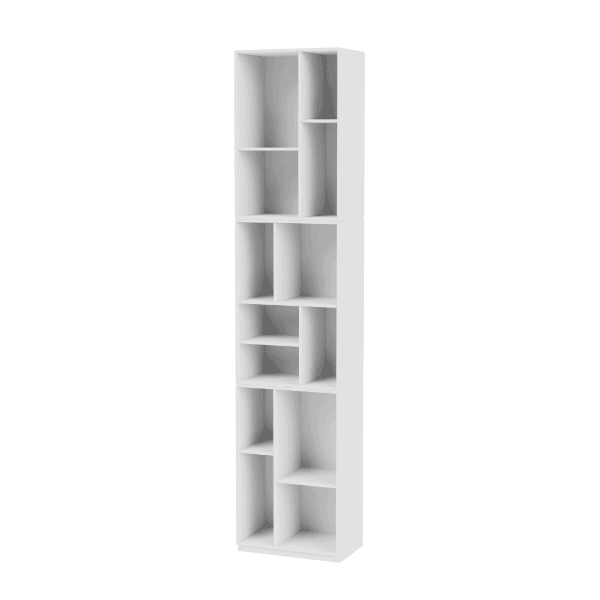 Loom er en bogreol med flere funktioner og en masse rum i forskellige størrelser. Bogreolen findes i alle Montanas 40 lakfarver og på enten sokkel eller med ophæng. Ønsker du en farve, der ikke er vist her? Kontakt os for flere informationer eller bestilling på de øvrige farver.