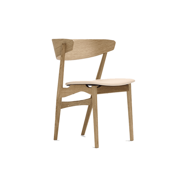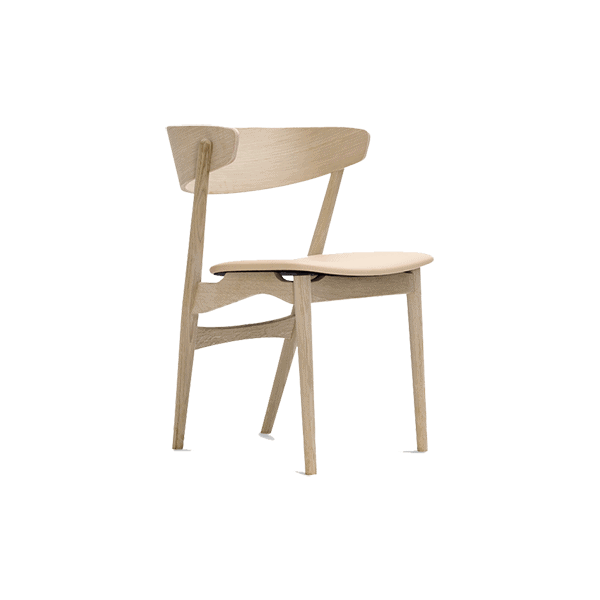 Denne tidløse No. 7 spisestol, er skabt af Helge Sibast i 1953. Stolen har en unik karakter og et raffineret design. Helge Sibast var kendt for bl.a. at udfordre de traditionelle metoder inden for træarbejde. Dette ses særligt i denne stol med det karakteristiske formpressede ryglæn, som giver stolen kant og personlighed samt øger siddekomforten. Sibast Spisestol no.