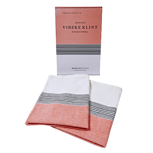 Vibeke Klint viskestykkerne fra NORDICMODERN findes i en rigtig fin gaveæske med 2 stk. i samme farve. Viskestykkerne er produceret i 100% GOTS certificeret bomuld. De fine viskestykker som er udvalgt i tæt samarbejde med NORDICMODERN, er baseret på de originale Vibeke Klint væveprøver, som er udvalgt af hendes datter, Le Klint.