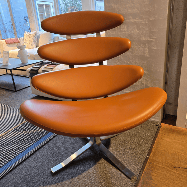 Oplev komfort og tidløst design med Corona stolen i blødt cognacfarvet læder, der giver et varmt og eksklusivt look. Det elegante stel i børstet stål skaber et moderne udtryk, der passer ind i både klassiske og moderne hjem.